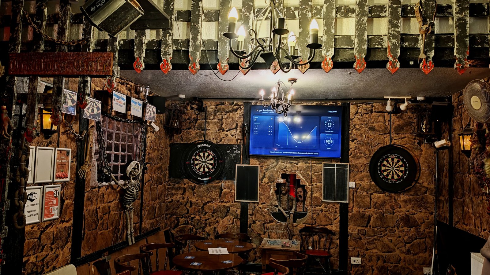 This atmospheric space is home to our competition-standard, halo-lit dart boards, making it the perfect spot for serious matches, friendly rivalries, and the occasional heroic comeback. Whether you're a seasoned player or just fancy a throw between pints, the dungeon provides a setting you won’t find anywhere else on the Island.